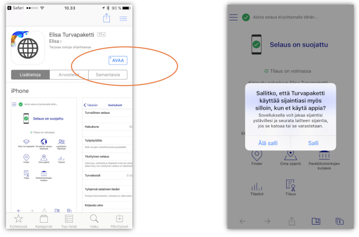 B: Turvapaketti applikaation lataaminen omaan puhelimeen