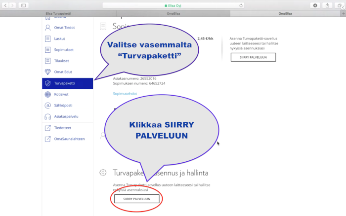 1. Mene linkkiin https://verkkoasiointi.elisa.fi/ohjaus/turvapaketti-asennus